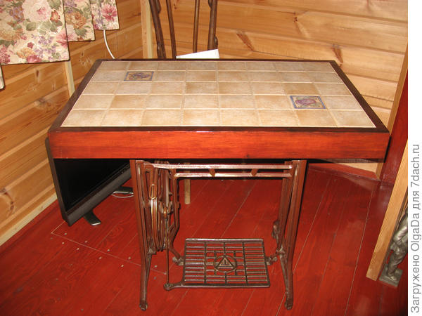Кстати у меня телевизор тоже стоит на столике с ножками от швейной машинки, который я сделала ещё в конце 90-х.