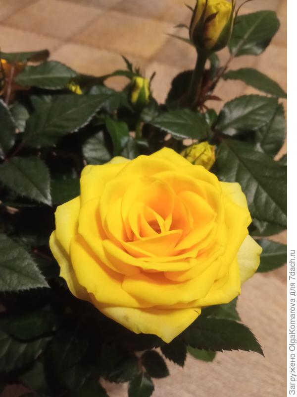 А эта густо-жёлтая флорибунда очень нравится мне тем, что она не сбрасывает лепестки. Даже отцветший бутон держит их, и совершенно нет «мусора» на земле