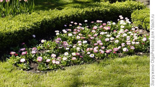 Возможно, Bellis perennis, белая английская маргаритка Bellis perennis Speedstar и розовая английская маргаритка Bellis perennis Speedstar… вы бы хоть близко цветы сфотографировали бы, чтоб было хорошо видно…