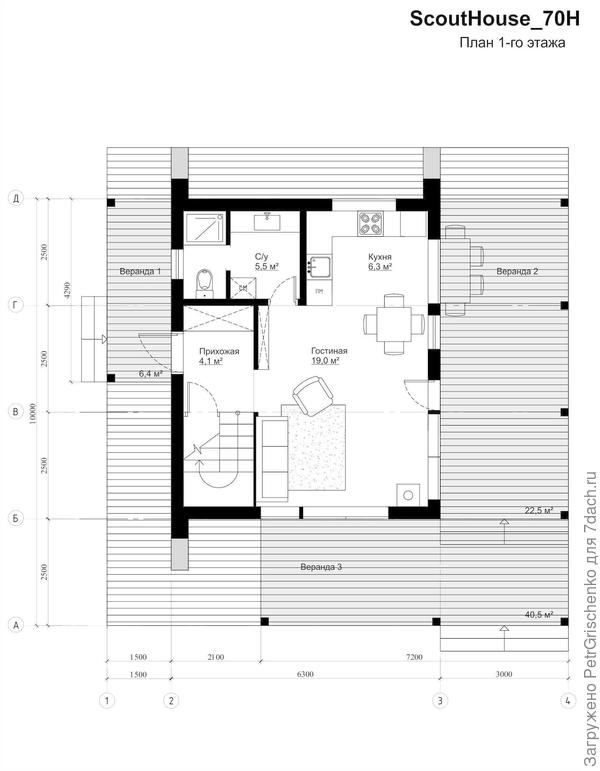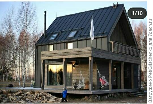 1. Как и раньше, одноэтажный с двускатной крышей, метров 60-70. В стиле дубльдома.