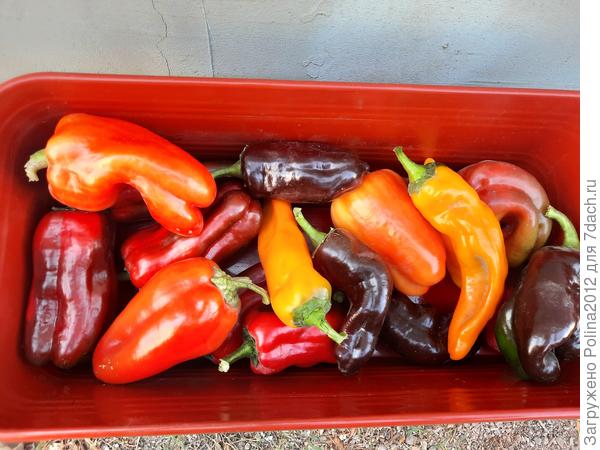 Такие перцы — Рамиро, Корнелия, Руслан, Рамиро оранжевый, Мустанг, Алкмар, Рубик, Бизон красный, Большой куш, Биг герл, Черный бриллиант, из острых — Жгучая вишенка и декоративный Медуза.