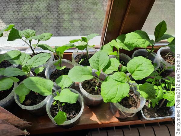 20 марта у баклажанов отчетливо видны первые настоящие листочки, и они готовы к пикировке.