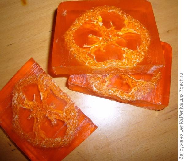 Мыло-скраб. То же самое, что и просто скраб. Только мыло))) Ну то есть любые абразивные частички в мыле. Летом вариантов, конечно, побольше. Косточки малиновые с пюрешкой ягодной очень в ходу у моих подруг. Ну а пока зима, кофейно-апельсиновому радуемся. Пахнет апельсином, а когда кожу натираешь, то кофием)))