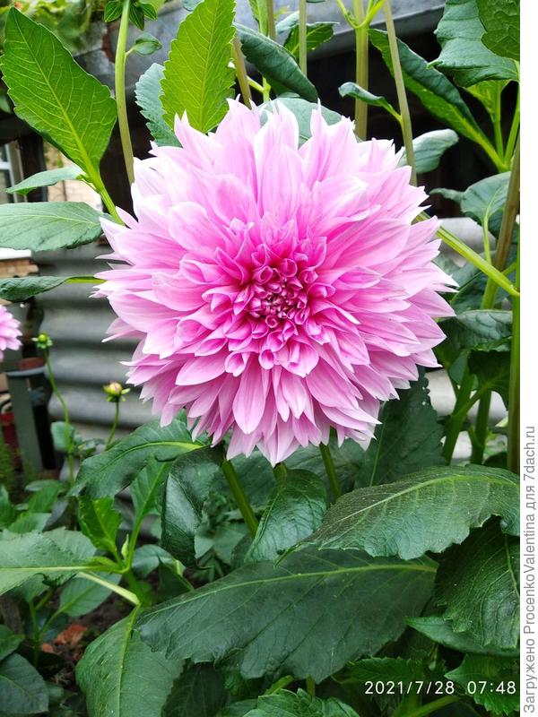 'Polly Bergen' (Полли Берген) класс – декоративные. Высота куста: 130-150 см. Размер соцветия: 25 см. Язычковые цветки розовые с едва заметной янтарной «каплей» на самом кончике. С нее все и началось: бабушка продавала цветы прямо возле своего дома, я договорилась с ней о покупке, как только настанет время выкопки клубней