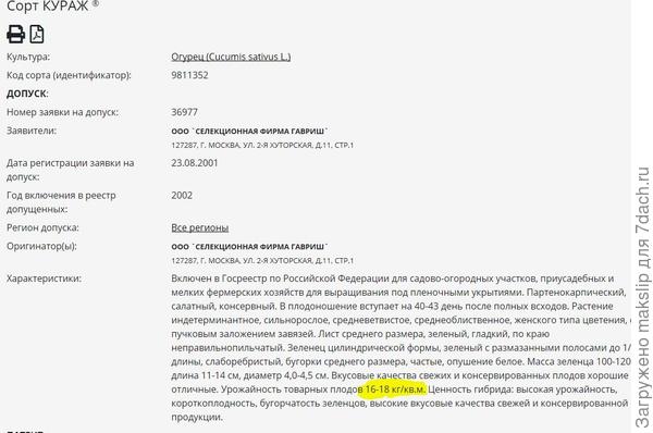 В фермерских хозяйствах, которые ориентируются на указанную производителем урожайность, больше урожая и не будет! Указанные 16-18 с кв.метра — так и будет. Зеленцы будут снимать в товарном весе-виде, а не будут додерживать до салатного состояния — иначе потеряют на продажах. А индивидуальный хозяин растит так, как ему нужно, и огурцы не снимает по калибру 100 г. На каждом огурце добавочных 20-30- 40 г — вот и «довесок» к обещанному.