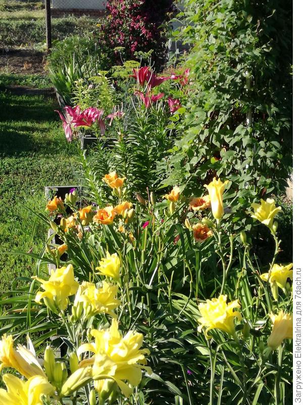 Две небольшие лужайки… Остальное -цветники, расположенные по периметру участка…