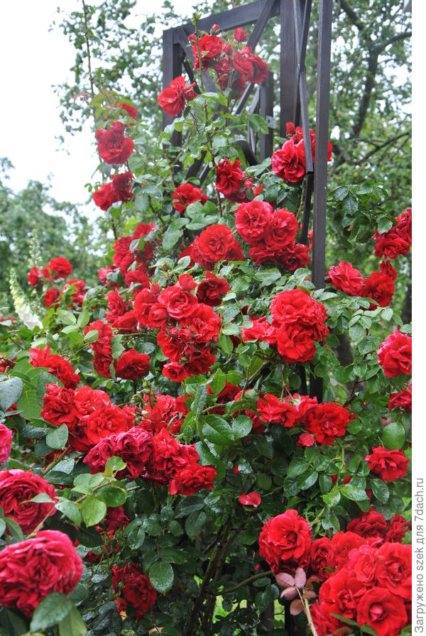 Что касается моих «рамблеров», то с огромным удивлением узнала, что Paul's Scarlet, который прекрасно себя чувствует у меня в саду уже около 20 лет, на самом деле — клаймбер, что зафиксировано даже в его названии. Вот так: век живи, век учись! А я все эти годы искренне считала, что это рамблер, т.к. цветет однократно на побегах прошлого года. Вот его-то я и обрезаю осенью: отцветшие плети и часть слабых молодых, выросших за лето, оставляю 10-12. Еще растет Excelsa, но это всем известный гибрид Вихурианы, у нее удаляю отцветшие побеги из-за угрозы мучнистой росы сразу же после цветения, а осенью частично прореживаю молодые плети.