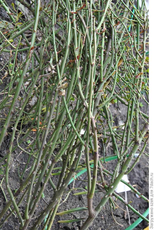 Мощный шраб 'Schneewalzer' с толстыми жесткими побегами очень трудно гнуть и укладывать под зимнее укрытие. Фото автора