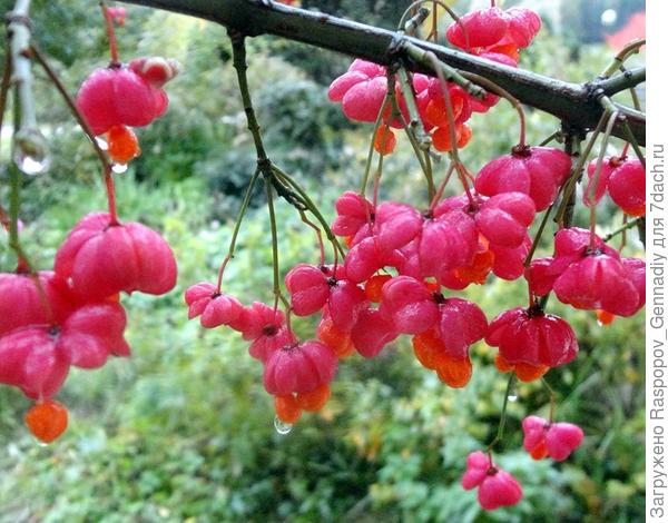 Вокруг сада много кустарников, они дают очень много веток для переработки на щепу, защищают периметр сада от ветров, а осенью их едят козы и дают целебное молоко. Кустарники красиво цветут, и ими можно украсить октябрьский стол.