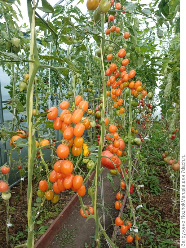 'Клубничка оранжевая', в отличие от 'Клубнички жёлтой', завязывал и простые, и сложные кисти. Но в каждой кисти, как и обещано производителем, 15-30 помидорок!