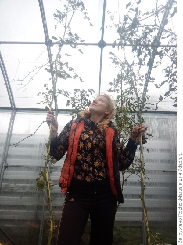 Эти индетерминантные томаты выросли у меня до самого потолка теплицы! И получились даже выше обещанных 120-150 см! Высота теплицы в коньке — 220 см, томаты доросли до самого верха и, кажется, росли бы дальше, если бы не октябрь))