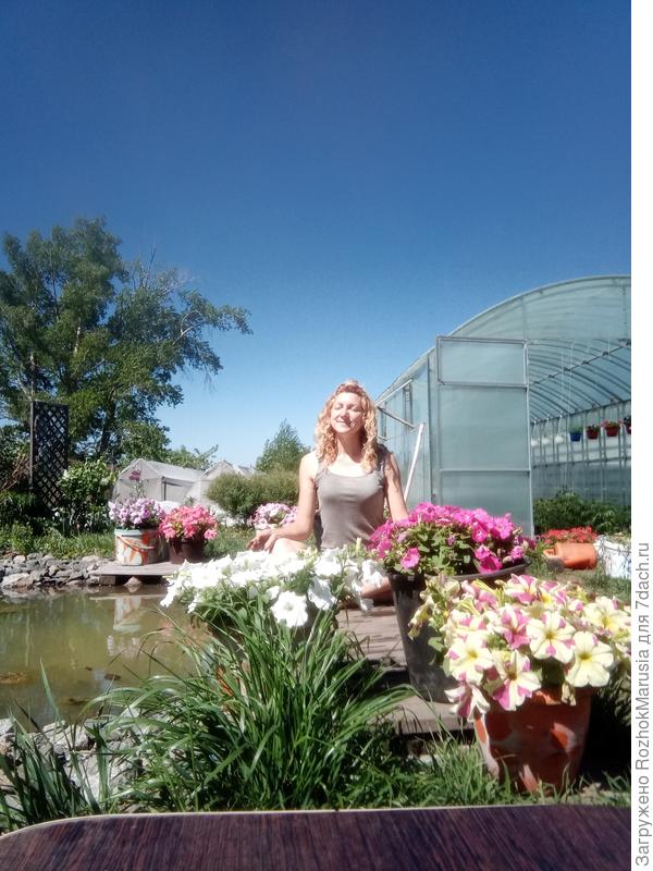 А уже на постоянное место в сад к концу мая я выношу цветущие кашпо и ведёрки с кустищами петуний!