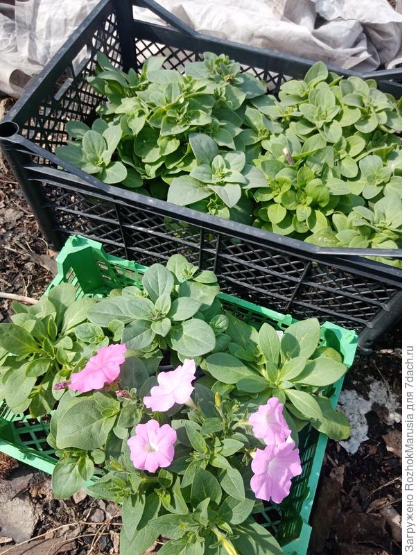 Петунии в кашпо и ведёрках для себя весь апрель и до середины мая держу в теплицах