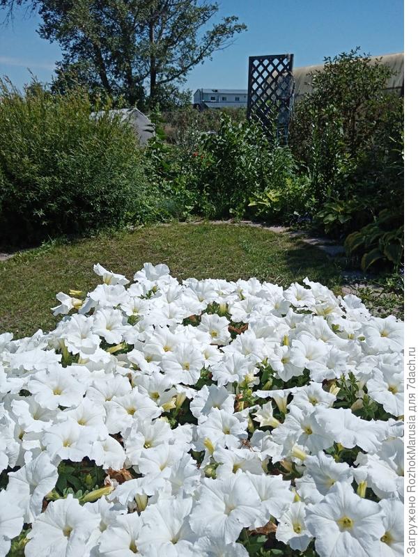 Эта белая красотка серии Изи Вейв росла у меня в старой бочке 60 л — 1 кустик.