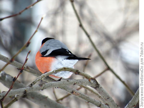Какой милашка. К нам в город, к сожалению, снегири не залетают.
