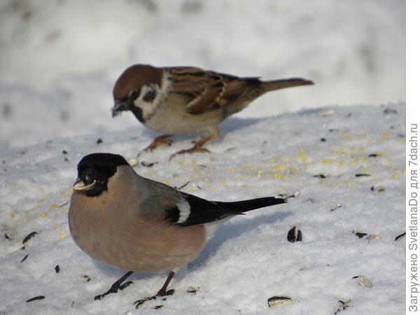 ЧУдное фото, Света! У нас зимой они появлялись не на долго. Жаль, что с Ватсаппа я не могу видео дочери загрузить. У них на кормушку прилетает серый снегирь и не дает кушать синичкам, пока сам не налопается. Оказывается, и такие есть снегири!