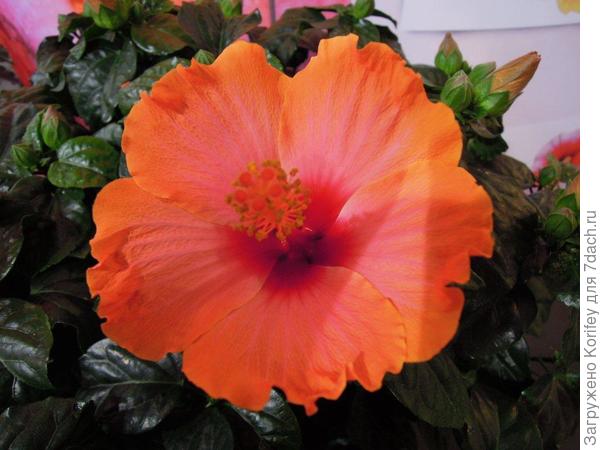 Подкормки для гибискуса я не использую, они и так прекрасно выглядят, лишь увеличиваю полив во время вегетации и цветения. Поливаю я все цветы дождевой, (а зимой и талой), водой комнатной температуры. Кроме того, каждое утро я обязательно опрыскиваю их, особенно, когда работает отопление. Для гибискуса высокая влажность особенно важна, как только воздух в помещении становится сухим, неизвестно откуда на него нападает паутинный клещик, избавиться от которого очень трудно.