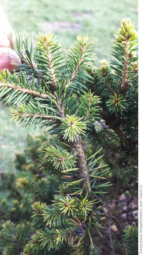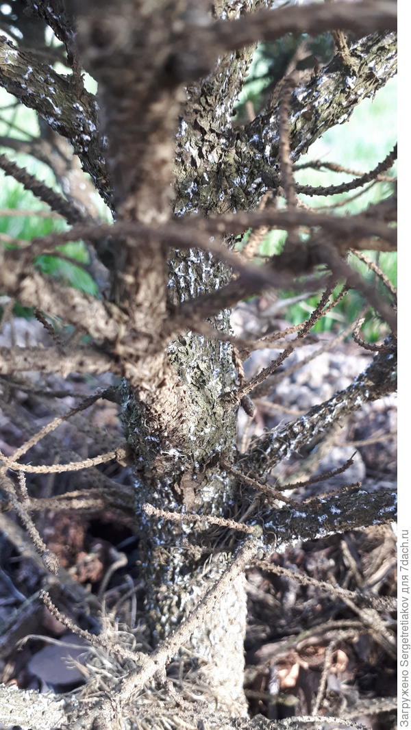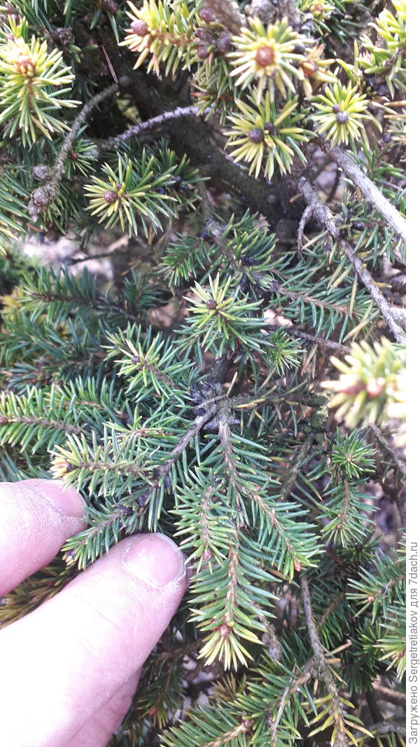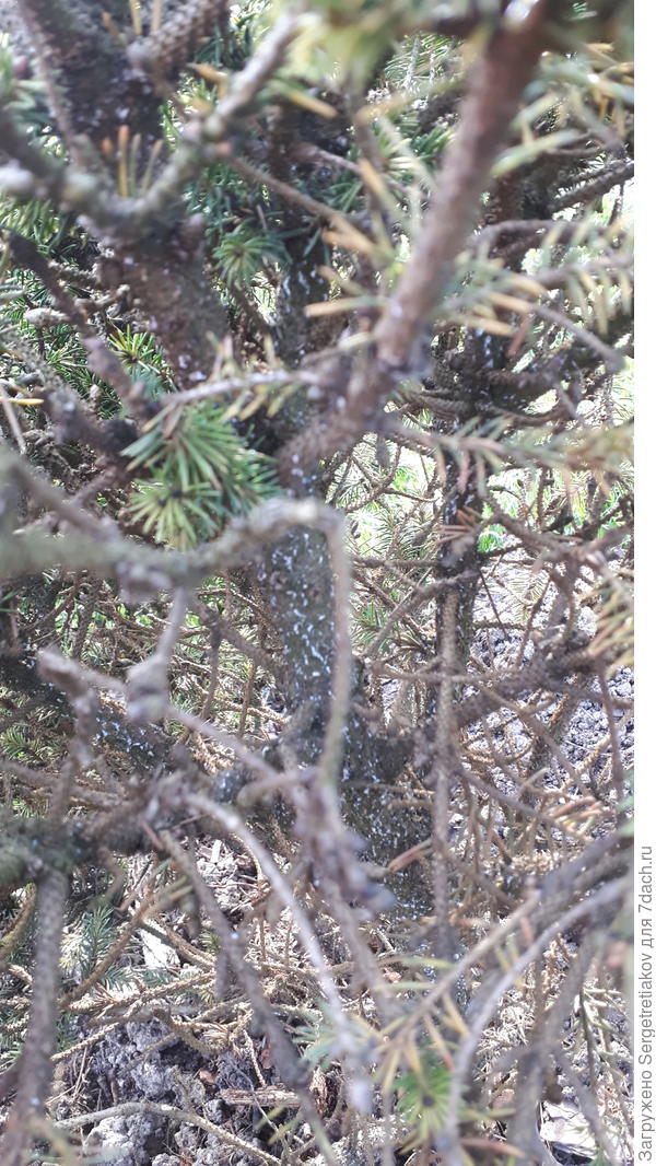 Высылаю вам фото, сделанное сегодня. На фото видно, что не исчезли белые точки на стволе ели и на ветках видны черные точки. Ветки в каком-то зеленом налете (лишайнике). Хвоя не зеленая а желтоватая и какая то суховатая. Ранней весной я провел предлагаемую схему лечения, то изменений не заметил. Сейчас опрыскиваю хвою цирконом, чередуя с эпином.