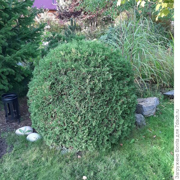 А эта выращена из саженца в 15 см, купленного в 2013 г. Сейчас она около 1,5 м. Фото 2020г. Тоже стригу ее каждый год.