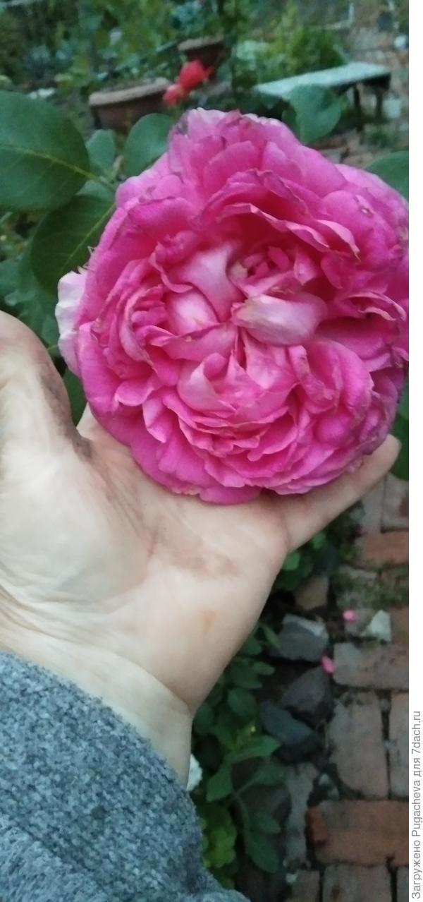 Точно такая же роза есть у меня, я её покупала под названием Шарль де Голль! Она очень сильно пахнет, аромат парфюма! Её отличительная черта- это ещё светло-зелёная матовая листва, тонкие, нежные листочки. У меня она индикатор чёрной пятнистости, всегда заболевает первой… Но у меня тоже есть сомнения, что это у меня Шарль де Голль, скорее это Поль Нерон. Но роза распрекрасная, ни за что с ней не расстанусь!😀