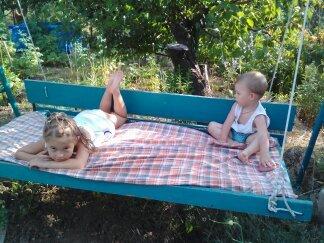 А у нас в деревне качели были совсем простые: из металлических труб и прочных, толстых досок. Достались вместе с домом и садом)) Дочку от них не оттащить)) Ну, вообще-то и я иногда не прочь покататься))) Они надежные, взрослого человека выдерживают спокойно.