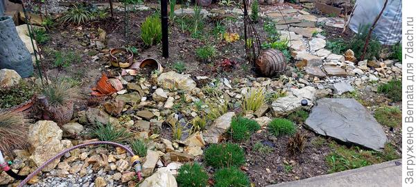 Делала, как удобнее… Щебенку подсыпала в щели между камнями и немного под низ, если камни с неровной нижней поверхностью