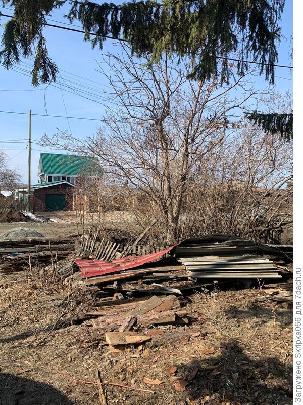 Спереди еще залежи досок, их уберем к осени и посажу вокруг рябины неприхотливые цветы.