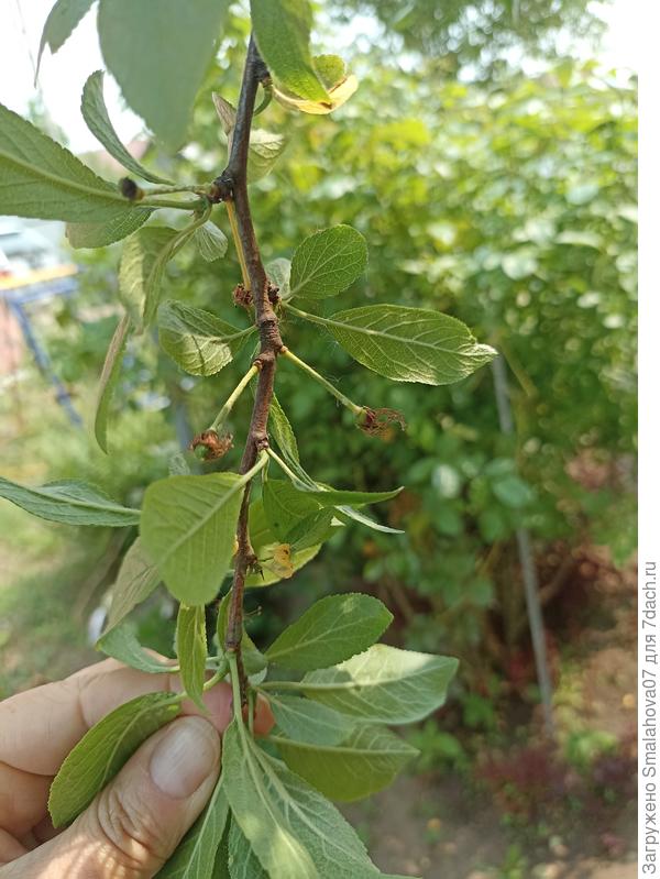 Слива, 10 лет. Появилась тля, должного ухода не было. Листья, ствол, ветки болеют. Но плодов дерево дает...