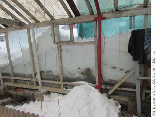 Теплица, которая служила много лет — свернулась под снегом как гармошка.