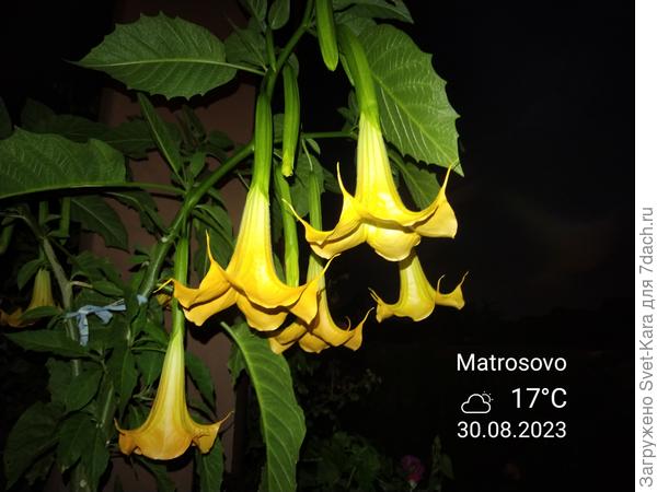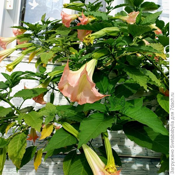 К сожалению я не знаю название сорта своей бругмансии. Может быть, кто-нибудь из семидачников сможет подсказать? Была бы очень благодарна. А пока растет и радует нас безымянной 😉
