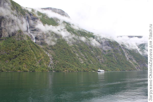 Водопад 3 сестры, мы плывем на таком же паромчике через фьёрд