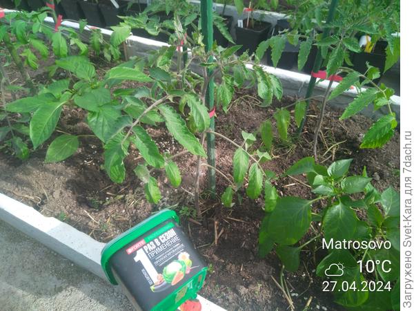 Этот сезон для рассады получился более экстремальным, и высадила я её 13 апреля. Лунки проливала теплой водой и добавляла по ложечке удобрения «Bona Forte» турбо универсальное с кремнием.