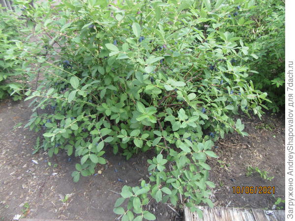 Ягодки у этой жимолости смешные с перетяжечками. Вкус самый сладкий из всех сортов, что растут в моем саду. Кустик очень плотный, ягодки собирать тяжеловато. Но поспели все одновременно.