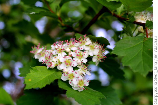 А рядом с ними, справа, боярышник. Цветет обильно, но запах на любителя)