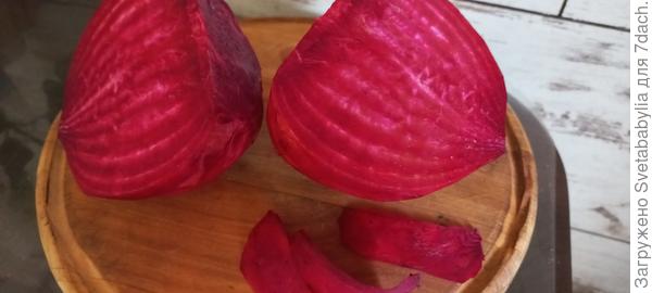 Гибрид отлично хранится и сохраняет высокие товарные качества длительное время. Тут я провела мини-эксперимент. 2 маленькие свеклы оставила без каких-то специальных условий хранения. В сарае они пролежали на полке жаркий август, дождливый сентябрь. Разрезала сегодня.