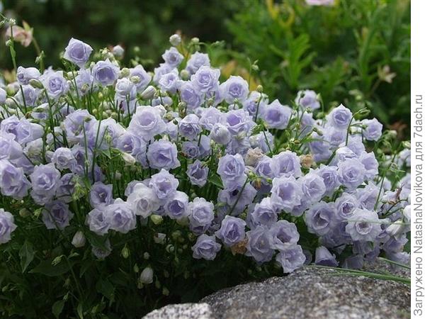 А как вам вот этот, лавандового цвета красавец? По мне так очень хорош! Этот колокольчик имеет компактную форму куста высотой около 30 см и весь усыпан небольшими цветочками очень красивой расцветки. Тоже многолетник, на одном месте может расти до 5 лет.