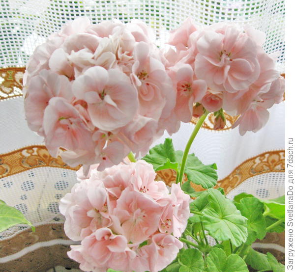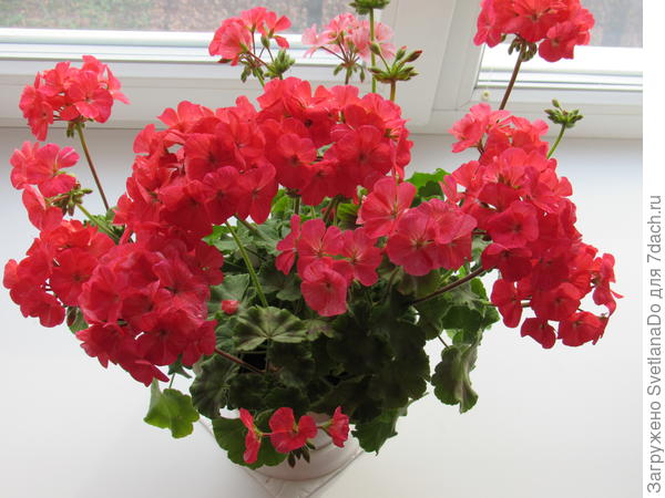 Думаю, что способствовала такому цветению подкормка палочками «Агрикола», очень моей гераньке понравилось! Воткнул в землю, полил — и готово (долгоиграющее удобрение). Короче говоря, очень люблю мою малышку, боюсь потерять. Купила, верней, выбрала за участие в конкурсе, очень похожий пакетик с семенами (свою не знаю по имени, по дурости не сохранила пакет), купила, буду выращивать! Вот, сорт «Малиновое мерцание» мне видится очень похожим. С правой стороны на фотографии тоже, конечно, попробую сорт пеларгонии вырастить.