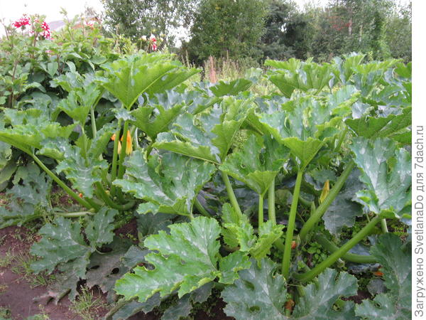 Гряда для кабачков выбирается на солнечном и защищенном от ветра месте, а подготавливаем ее обычно осенью, внося перепревший навоз или компост. Кустовые кабачки занимают меньше места, поэтом я их высаживаю в шахматном порядке, зная, что они не переплетутся.