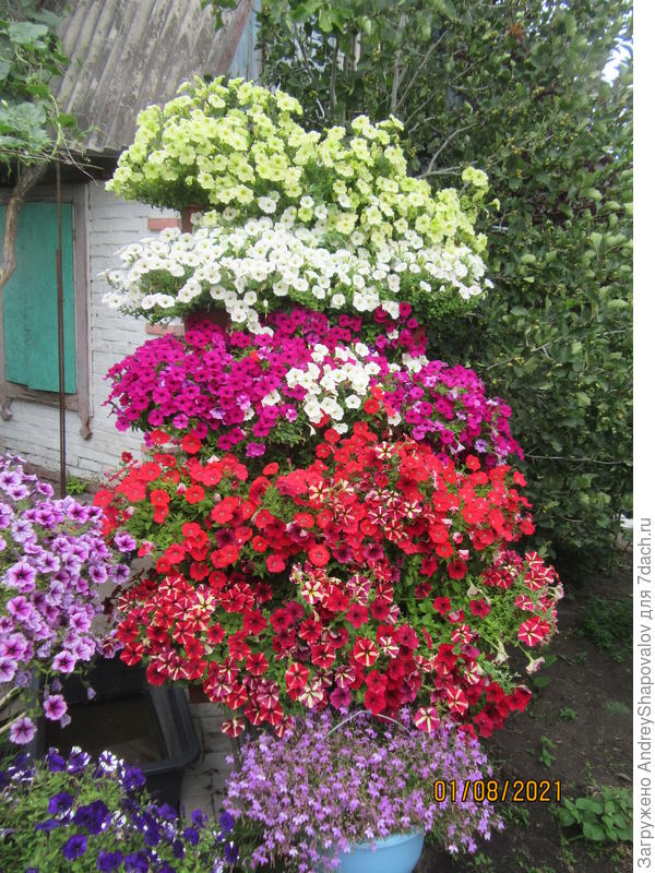 Нормальные петунии ( не из цветных пакетиков ) обильно цветут до заморозков. Фото 1 августа.