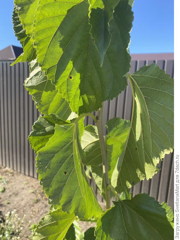 Ещё как не очень хороший вариант, что это Бактериальная пятнистость (Mycosphaerella mori). Тогда соберите все заражённые листья (утилизируйте) и если температура выше +10 С, обработайте фунгицидами и бакарицидами.