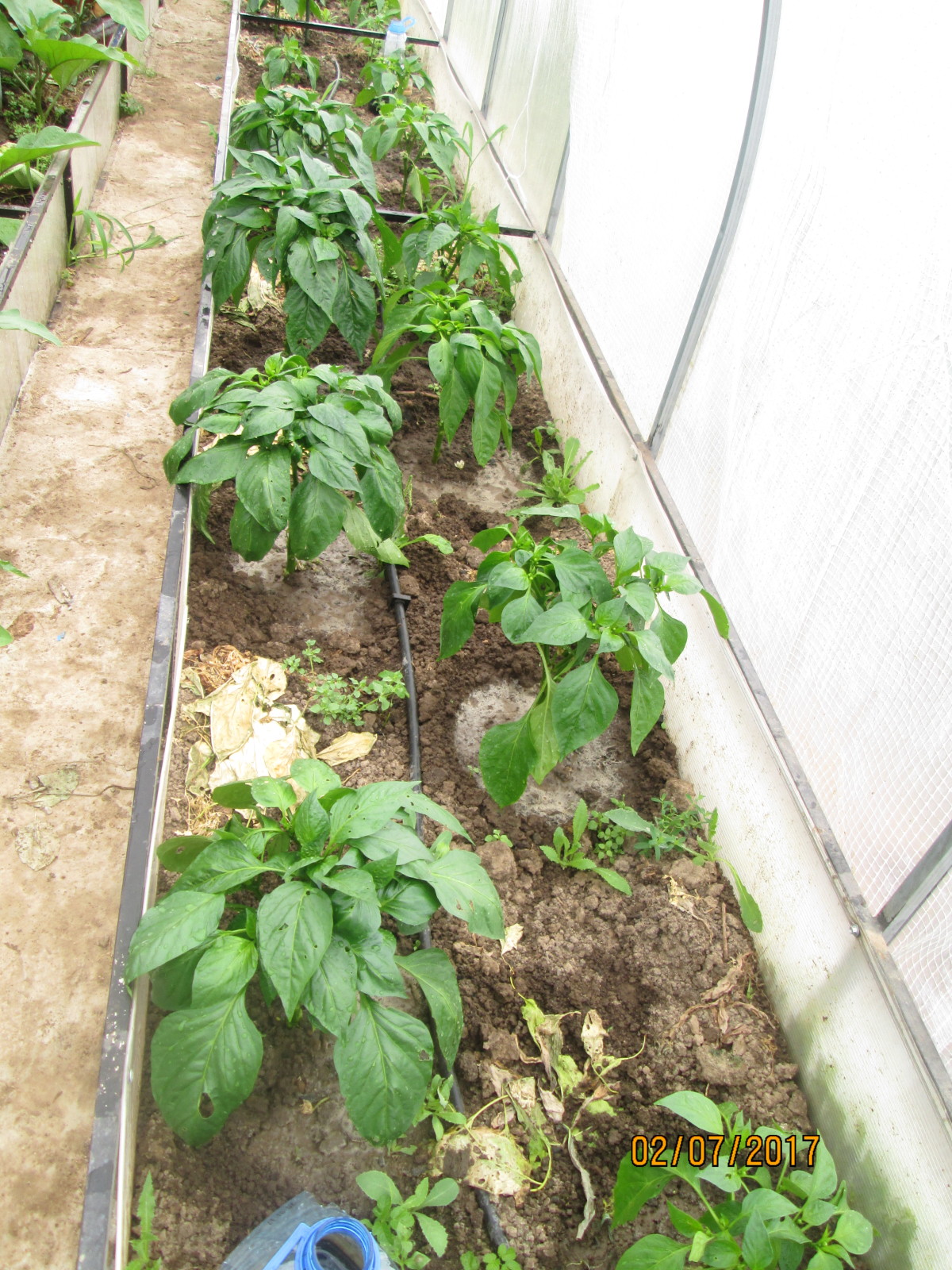 Мои грядки в теплице. Перец растет!