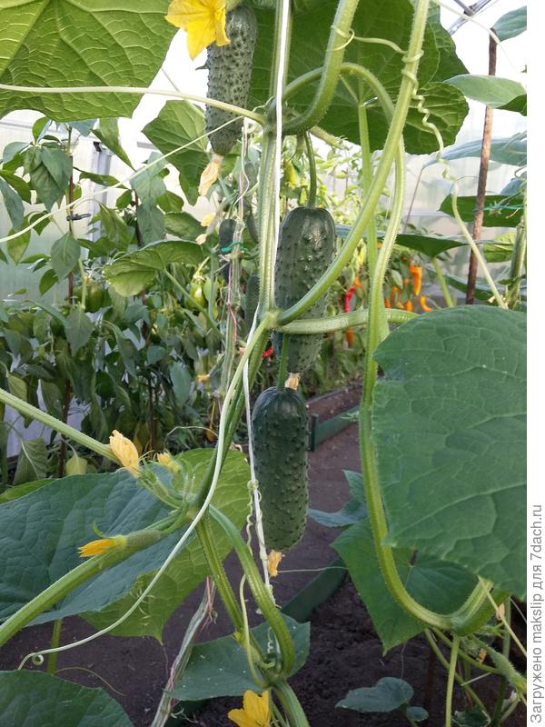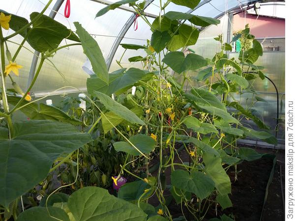 У меня только входят в стадию плодоношения и «ускорительного» роста, несколько томатов только покраснели, остальные дозревают. Перцы также набирают пока массу, у нас они в теплице, но в связи с жарким июлем, что-то подунывшие стоят. Огурчики едим, много зреют, и ещё цветут. Так что до середины сентября точно будем кушать))))