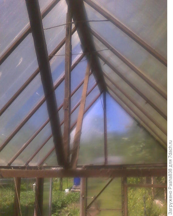Уж привык. Балки там внутри идёт три, две — норм, а одна — эта да, мешает. Я уж думал её поролоном отделывать каким-нить, но потом как-то на уровне инстинкта стало, иду по теплице неважно в какую сторону смотрю — в этом месте машинально голову опускаю. Старой части теплицы уже 15 лет, новая пристроена позже (раньше теплица была вдвое короче).