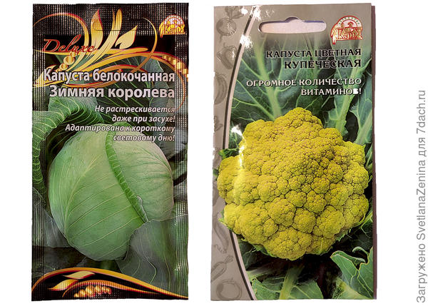 В этом году на тестирование я выбрала капусту белокочанную «Зимняя королева» и капусту цветную «Купеческая».