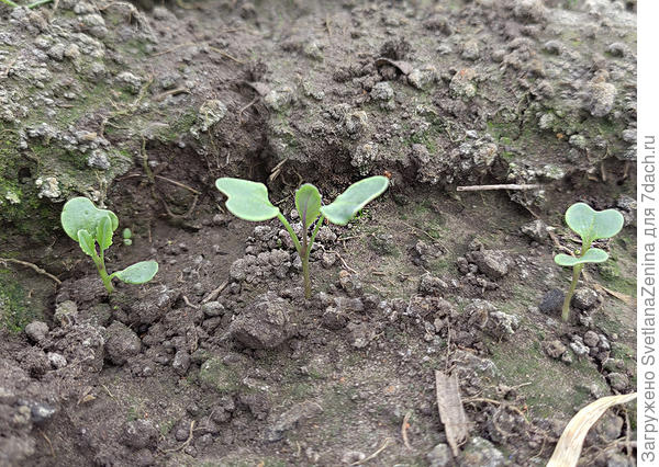Всходы появились дружно через 4 дня — 20 апреля. Правда, 5 из 6.