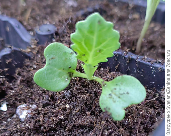 Первые настоящие листочки капусты белокочанной «Зимняя королева»