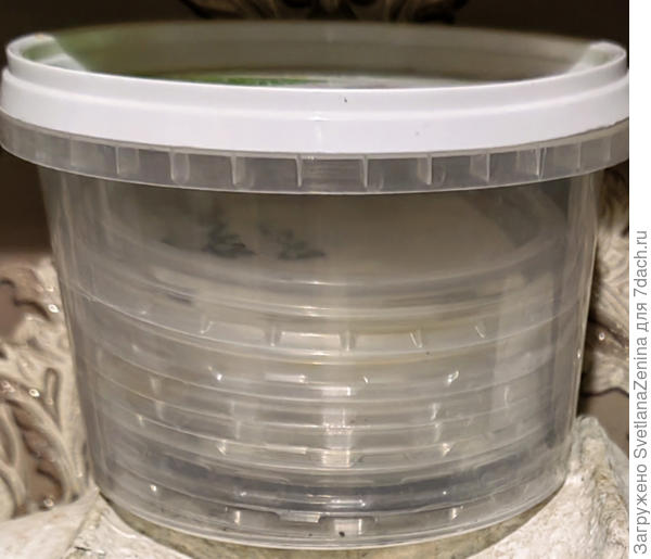 Произвольно выбрала 6 штук (5 получилось крупных, а 1 семечко мелкое) и завернула их в смоченную дождевой водой бумажную салфетку, положила в закрытый контейнер и поставила на батарею отопления. Правда, отопление включалось всего 2-3 раза в сутки, но хотя бы в течение нескольких часов температура достигала +30 градусов. В остальное время была +18...+20 градусов.