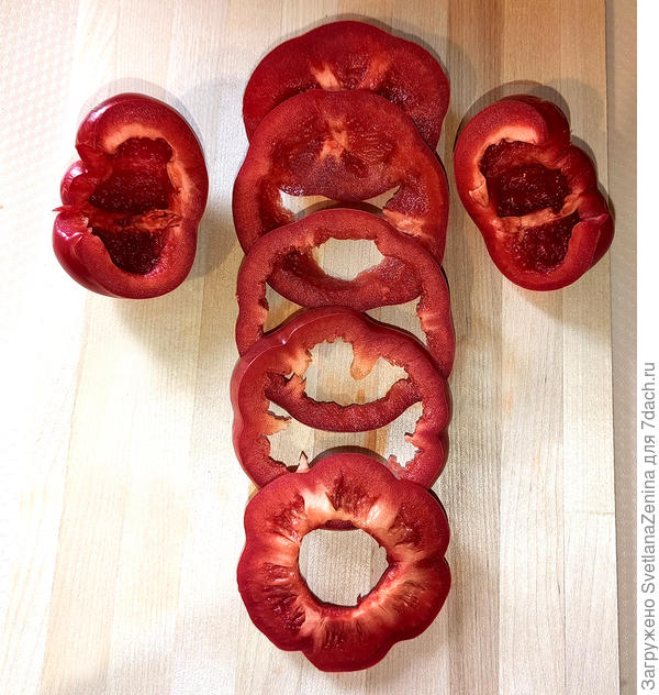 Этот перец идеально подходит для фаршировки. Маленькие можно мариновать, наполнив творожным сыром. Крупные запекать с мясом или овощами. Но у меня мелкие сразу съедали дети, а крупный отправила в лечо, так как была нехватка толстостенного перца.