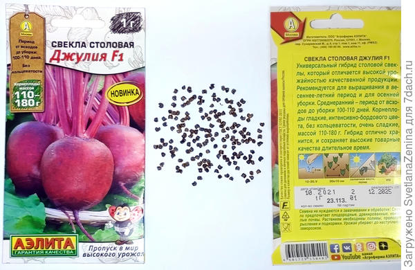 'Джулия F1' среднеранний гибрид (100-110 дней). Корнеплоды гладкие интенсивно-бордового цвета, без кольцеватости, очень сладкие, массой 110- 180 г. Надеюсь получиться проверить.