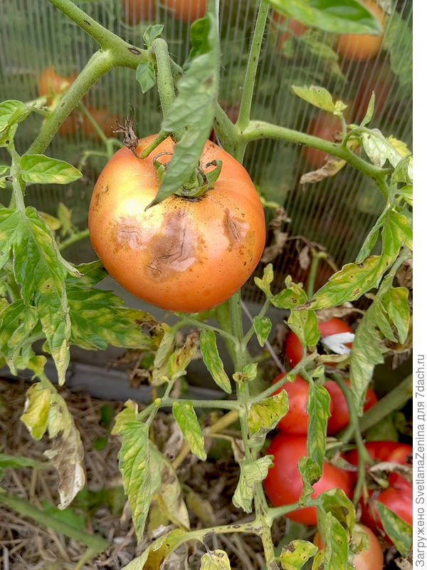 Разница в развитии томатов на улице и в теплице получилась большая. Хотя детерминантные томаты многие выращивают в открытом грунте, моему кустику в ОГ не понравилось. И листья желтели и сохли, и плоды обгорали и портились. Конечно, погода часто была жесткой, но другие сорта на неё так не реагировали.